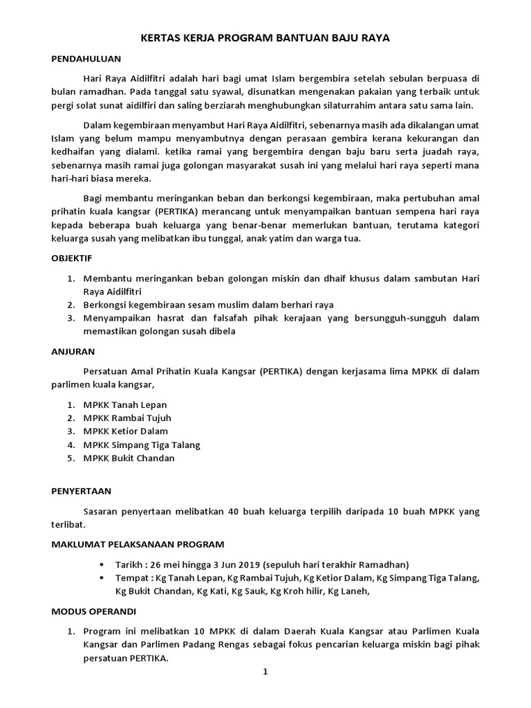 Kertas Kerja Program Bantuan Baju Raya Pdf