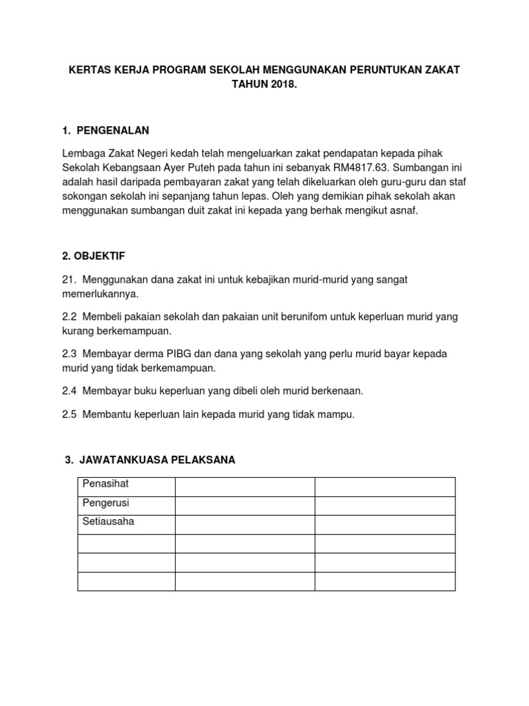 Kertas Kerja Program Sekolah Menggunakan Peruntukan Zakat 2018 Pdf
